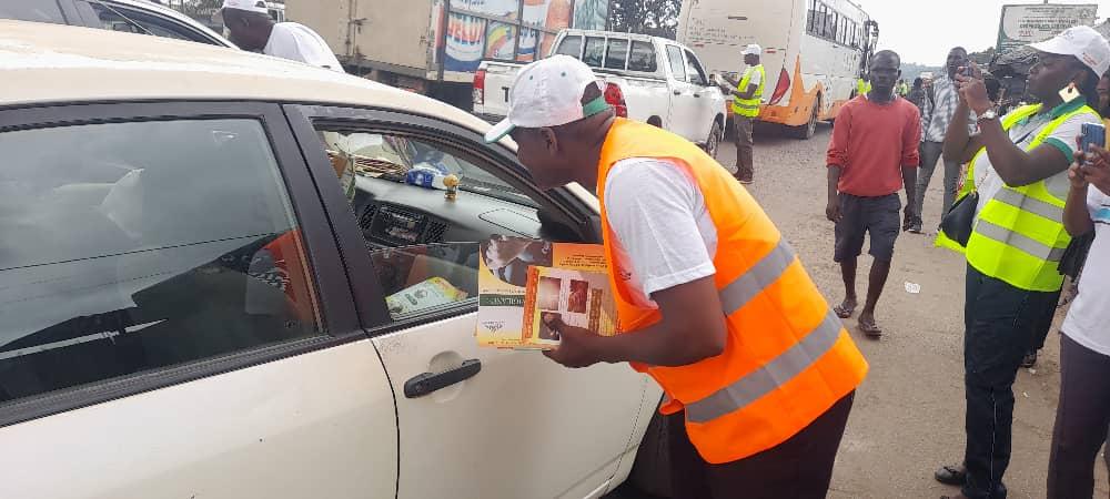 Dans le cadre de la 9ème édition de la semaine nationale de sécurité routière, des agents de la police spéciale de sécurité routière (Pssr), de l’Office de sécurité routière (Oser) et la gendarmerie ont mené une action de sensibilisation des usagers, le vendredi 06 octobre 2023 au niveau de l’ancien corridor de Yopougon et à Élibou.
