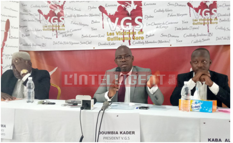 Au cours d’une conférence de presse , lundi 25 novembre 2019 à la maison de la presse, à Abidjan-Plateau, Doumbia Kader, président de l’association Les Victimes de Guillaume Soro (VGS), a annoncé que son mouvement saisira les juridictions compétentes pour situer les responsabilités de Guillaume Soro, sur les crimes qui lui sont imputés depuis la rébellion jusqu’à la crise postélectorale..