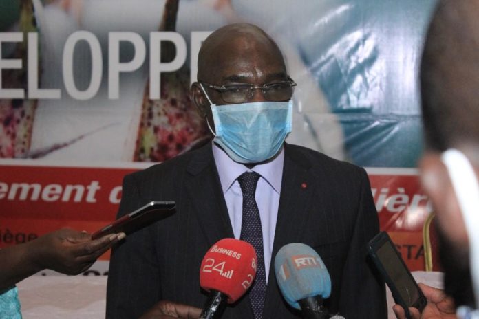 Poursuivant, Adama Coulibaly a fait observer: “Le problème de nos acteurs, c’est le financement, donc il fallait trouver un mécanisme pour permettre d’assurer le financement. Une fois que cela est fait, les achats se déroulent sur le bord champ et c’est ce que nous avons fait. Aujourd’hui, les achats se font sur le bord champ et au prix du gouvernement. Les acteurs achètent le produit sans avoir une lisibilité. L’impact pour ce qui est de la noix de cajou en début de campagne, les contrats qui ont été négociés étaient entre 1400 et 1550. Les mêmes contrats aujourd’hui, les clients proposent 900 dollars. Donc il y a un gap de près de 500 dollars. Les acteurs depuis l’ouverture de la campagne achètent le produit. C’est ce qui nous a permis d’enlever 330 mille tonnes de produits des mains des producteurs. Si on compare ce chiffre à ce qui a été enlevé en 2019 sur la même période, nous étions à 342 mille tonnes. Donc il y a juste un gap de 12 000 tonnes entre la campagne de 2019 et celle de cette année alors que l’année passée, nous avions exporté près de 300 mille tonnes. Cette année, nous sommes autour de 130 mille tonnes de produits déjà exportés. Ce qui veut dire que les acteurs font confiance à la filière. Ils se disent que le Corona va passer, qu’on achète nos stocks. La plupart de nos magasins sont chargés, le mouvement s’accélère au fur et à mesure qu’on a des perspectives positives”.