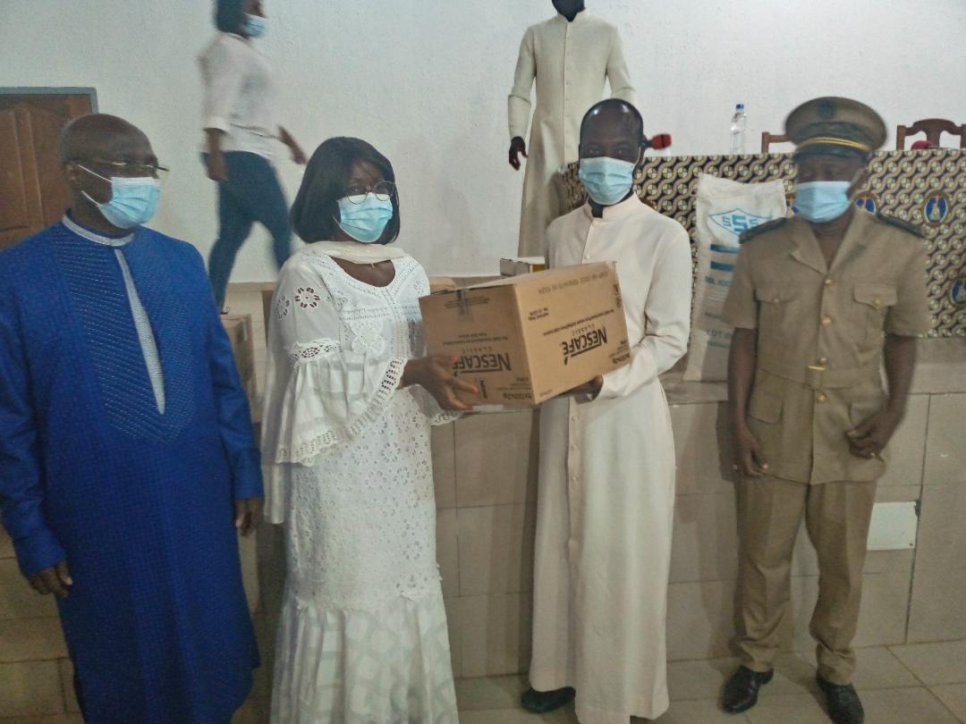 D’un coût global de trois millions de franc CFA, ces dons sont composés entre autres de sacs de riz, de cartons d’huile de cinq litres, de cartons de pâte alimentaire, de sacs de sel, de cartons de sucre, de carton de lait, de cartons de poudre de chocolat et de cartons de Nescafé destinés à la caritas et aux séminaires.