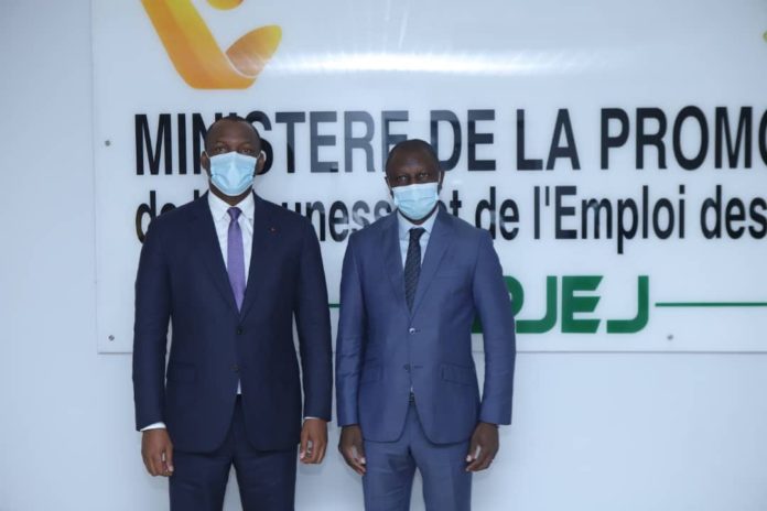 Le ministre de la Promotion de la Jeunesse et de l’Emploi des Jeunes Mamadou Touré a reçu, le lundi 17 août 2020 à son cabinet au Plateau, Sory Diabaté, dans le cadre de l’élection à la présidence de la FIF.