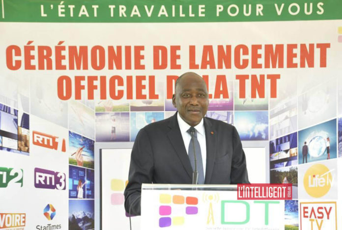 Il a également salué le travail abattu par le ministre Sidi Touré : « Permettez-moi également de remercier et de féliciter monsieur le ministre de la Communication et des médias, Sidi Touré. C’est vous monsieur, le ministre qui avez lancé les travaux l’année dernière. Et nous voilà à nouveau réunis avec vous pour le lancement et la mise en service de la TNT sur le district d’Abidjan. Je voulais donc vous féliciter, vous encourager et vous demander de conduire ce projet à terme et dire que nous sommes convaincus que vous le ferez avec toute votre équipe ».