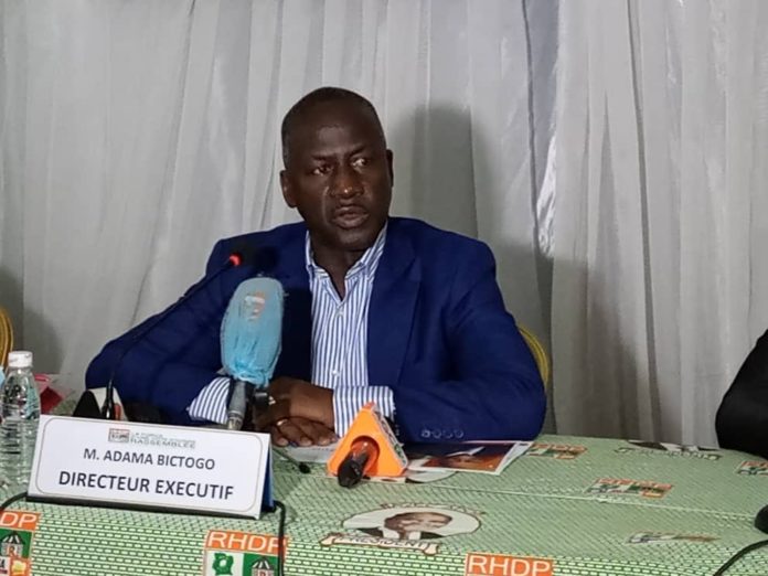 Le mardi 18 août 2020, au sortir d’une rencontre avec les jeunes puis les femmes RHDP au siège annexe du parti à Abidjan Cocody Rue-Lepic, dans le cadre des préparatifs de la cérémonie d’investiture du président Alassane Ouattara, le samedi 22 août 2020 prévue au stade Félix Houphouët-Boigny d’Abidjan Plateau, pour la présidentielle du 31 octobre 2020, le ministre Adama Bictogo, Directeur exécutif du RHDP a invité les uns et les autres à s’approprier cette candidature.