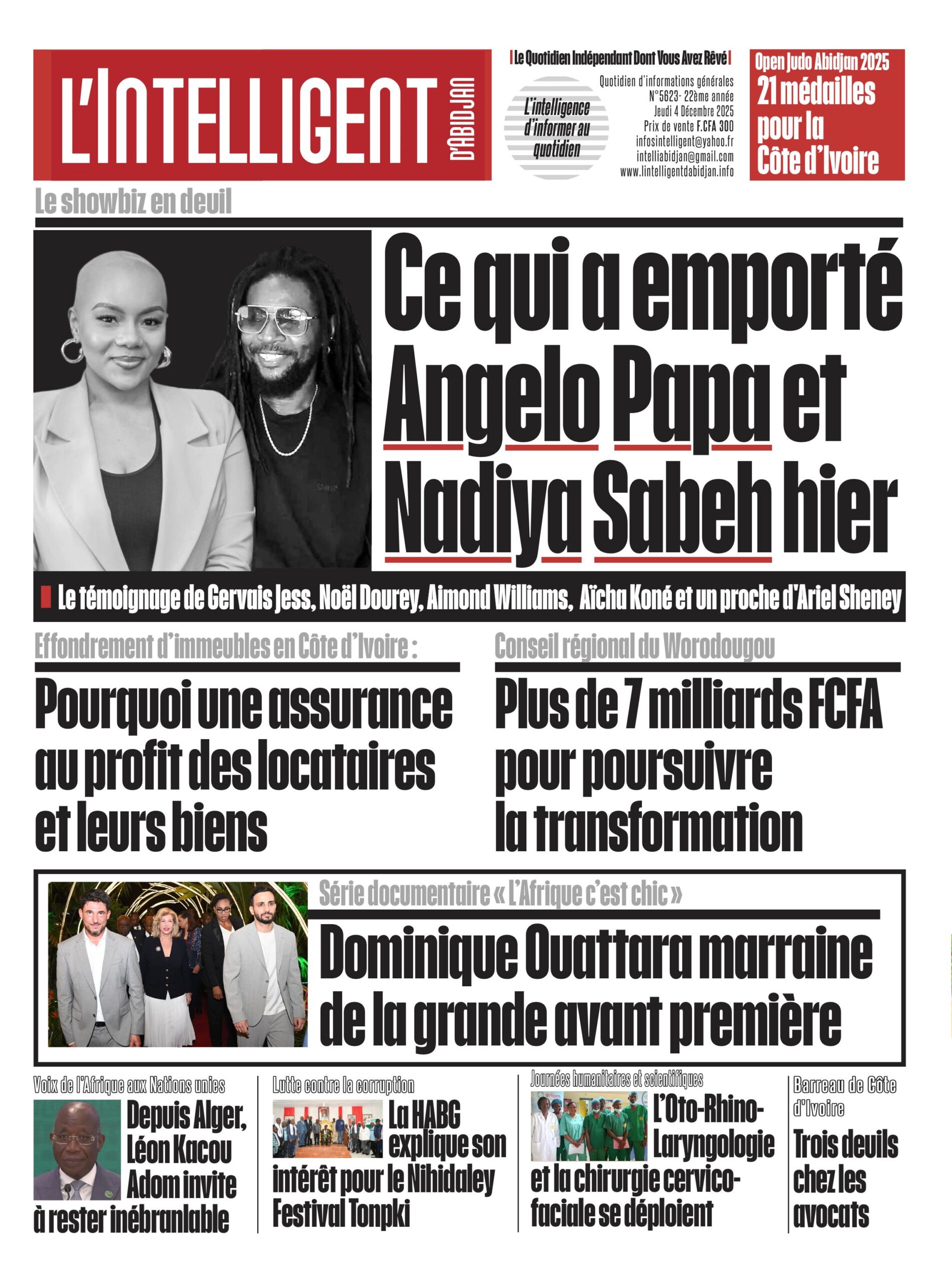 Worodougou, Voix de l’Afrique aux Nations unies , Léon Kacou Adom invite à rester inébranlable depuis Alger; La HABG explique son intérêt pour le Nihidaley Festival Tonpki; Dominique Ouattara parraine la grande avant-première de la Série documentaire « L’Afrique c’est chic; L’Oto-Rhino-Laryngologie et la chirurgie cervico-faciale se déploient.