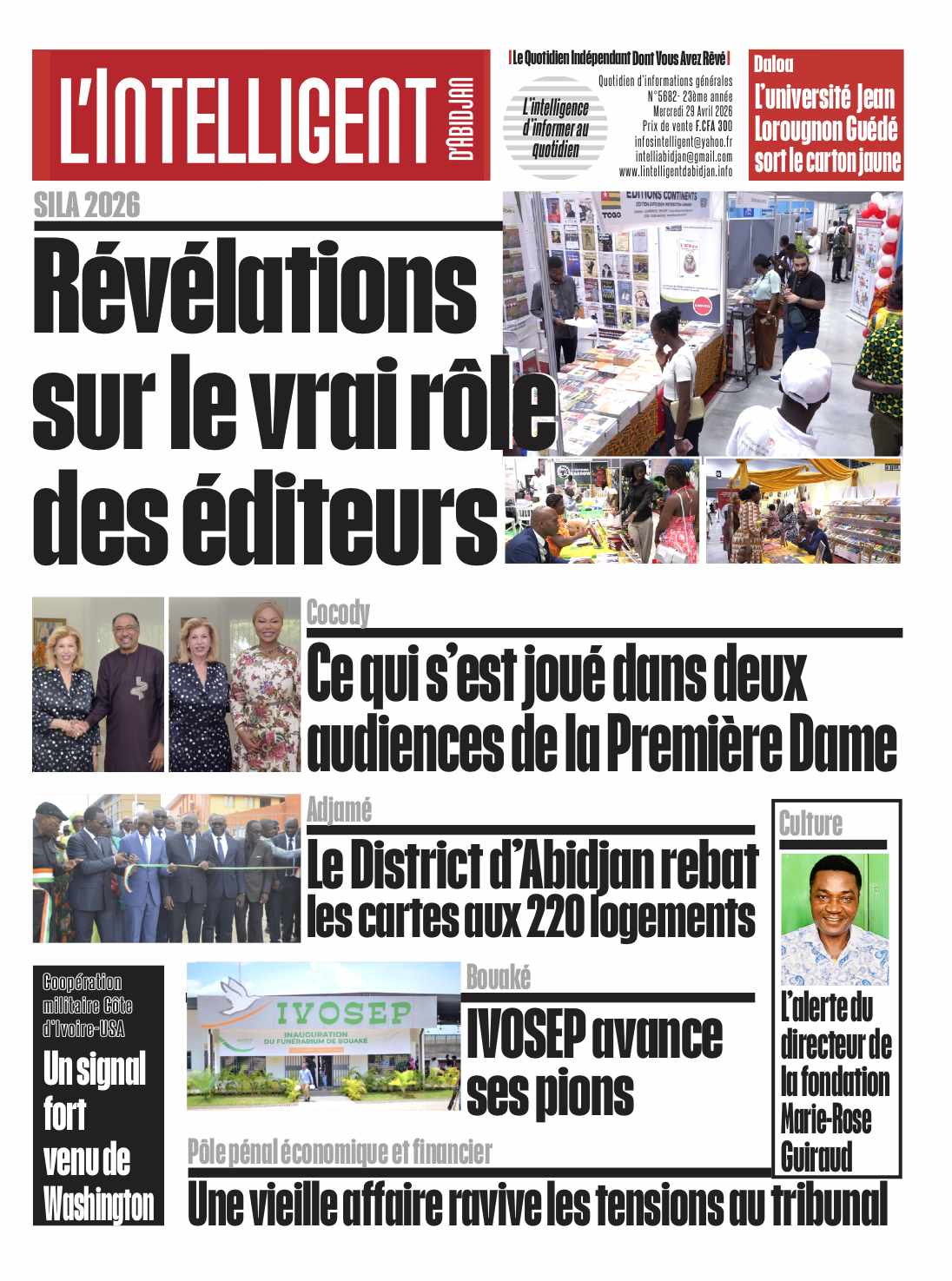À lire aussi ce qui s’est joué dans deux audiences de la Première Dame à Cocody; Le District d’Abidjan rebat les cartes aux 220 logements d’Adjamé; IVOSEP avance ses pions à Bouaké; Un signal fort venu de Washington au niveau de la coopération militaire Côte d’Ivoire-USA; Une vieille affaire ravive les tensions au   Pôle pénal économique et financier.