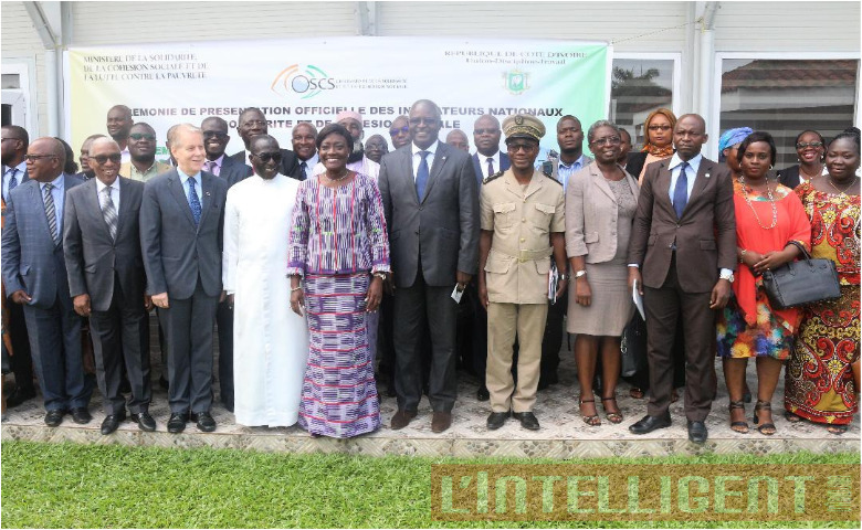 Dans le cadre de la réalisation des missions que lui assigne son décret de création N°62-2008 du 28/02/2018, l’Observatoire de la Solidarité et de la Cohésion Sociale (OSCS), qui est l’outil de veille , d’alerte et d’aide à la décision , est placé sous la tutelle du Ministère de la solidarité , de la Cohésion sociale et de la Lutte contre de la pauvreté (MSCSLP). Selon le décret qui l’institue, l’OSCS a pour mission, entre autres, la définition et l’actualisation des indicateurs de la solidarité et de la cohésion sociale. Au cours de cette activité, Mariatou Koné a dit : « l’Observatoire de la Solidarité, de la cohésion Sociale de la lutte contre la pauvreté, au regard de sa mission de définition et d’actualisation des indicateurs de la solidarité et de cohésion sociale, se devait de résoudre cette équation. Cela est désormais chose faite depuis le 12 juin 2019 avec l’adoption, par le gouvernement en Conseil des Ministres, des indicateurs nationaux de la solidarité et de la cohésion sociale ». Plus de 151 indicateurs de la solidarité et de cohésion sociale dont 114 de cohésion sociale et 37 de la solidarité ». Au niveau de la solidarité deux (2) grandes dimensions sont mises en évidences : la solidarité publique et la solidarité privée et sept (7) grandes dimensions ont été retenues au niveau de la cohésion sociale . À savoir : ‘’la sécurité et la défense’’, ‘’la justice et droits humains’’, ‘’légitimité’’, ‘’diversité’’, ‘’appartenance’’, ‘’inclusions’’, ‘’participation politique et citoyenne’’. Tous ces indicateurs permettront d’évaluer régulièrement l’état de la solidarité et de la cohésion sociale en vue de faire des recommandations appropriées au Gouvernement et faciliter la prise de décision, a confirmé la ministre. Mariatou Koné a traduit toute sa reconnaissance au Premier ministre Amadou Gon Coulibaly, chef du gouvernement, dont le cabinet a coordonné les derniers travaux interministériels sur les indicateurs nationaux élaborés.