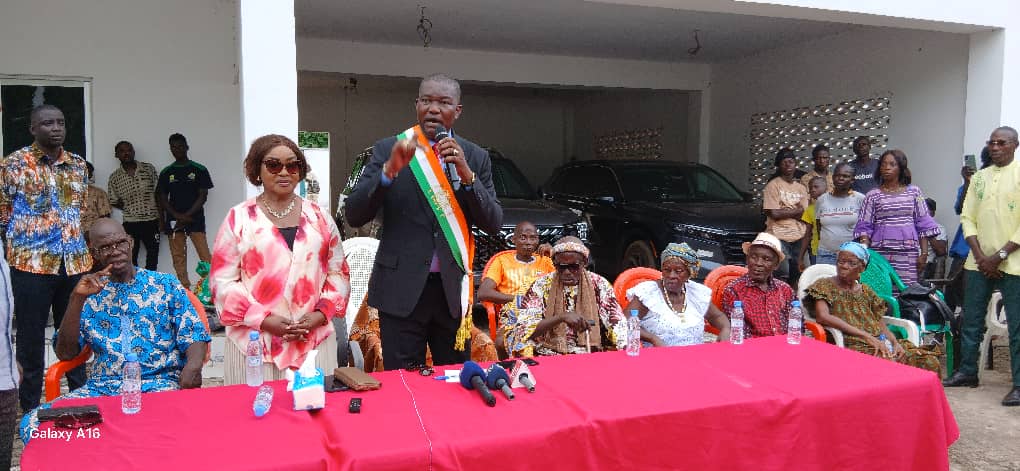 Devant les membres de son cabinet et de son staff de campagne et des villageois, l’élu a placé son intervention sous le signe de la lutte contre la pauvreté et du renforcement de la cohésion sociale. « Ce jour marque le début d’un travail concret en faveur des populations. (…) Aujourd’hui, il s’agit de faire en sorte que nos parents puissent sortir de la pauvreté,  des difficultés. Parce que  nul n’est né pour être malheureux à vie. Il faut aider les gens. Les jeunes, les femmes ont besoin de leader charismatique. Humblement je m’en  déclare », a-t-il déclaré, exprimant sa reconnaissance aux habitants du département.